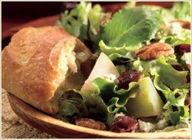 Recently they added a new salad, the Orchard Harvest salad. At first I rejected Panera's attempt to woo me back with this offering. One day, desperate to feel something - anything - again, I caved. I was presented with a bowl full of lettuce, pecans, gorgonzola cheese... this was looking familiar. Sure, the apple and chicken had been replaced with dried cherries and fresh cut pear, but there was enough similarities to pique my interest.